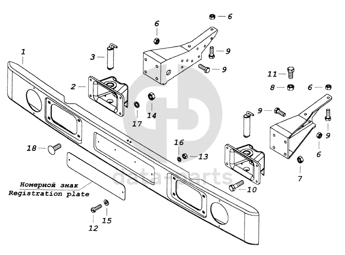 Установка переднего буфера КамАЗ-43118