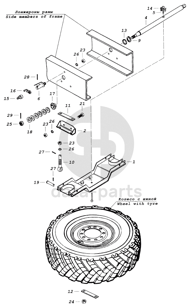 Ось КАМАЗ-43118 ворота держателя запасного колеса
