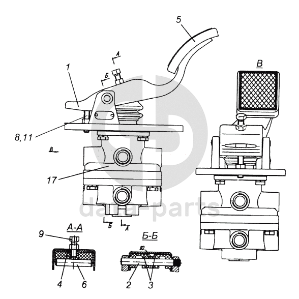 Кран тормозной двухсекционный с педалью КамАЗ-43118