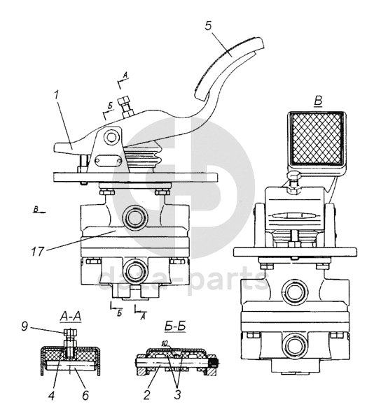 Кран тормозной двухсекционный с педалью КамАЗ-4326