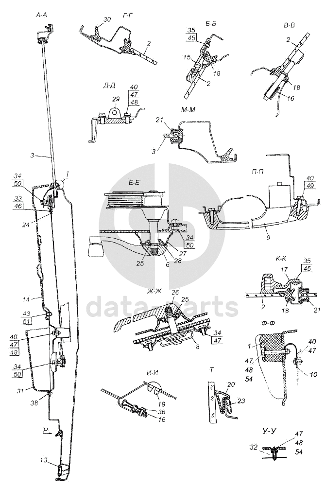 Держатель КАМАЗ уплотнителя стекла двери левый