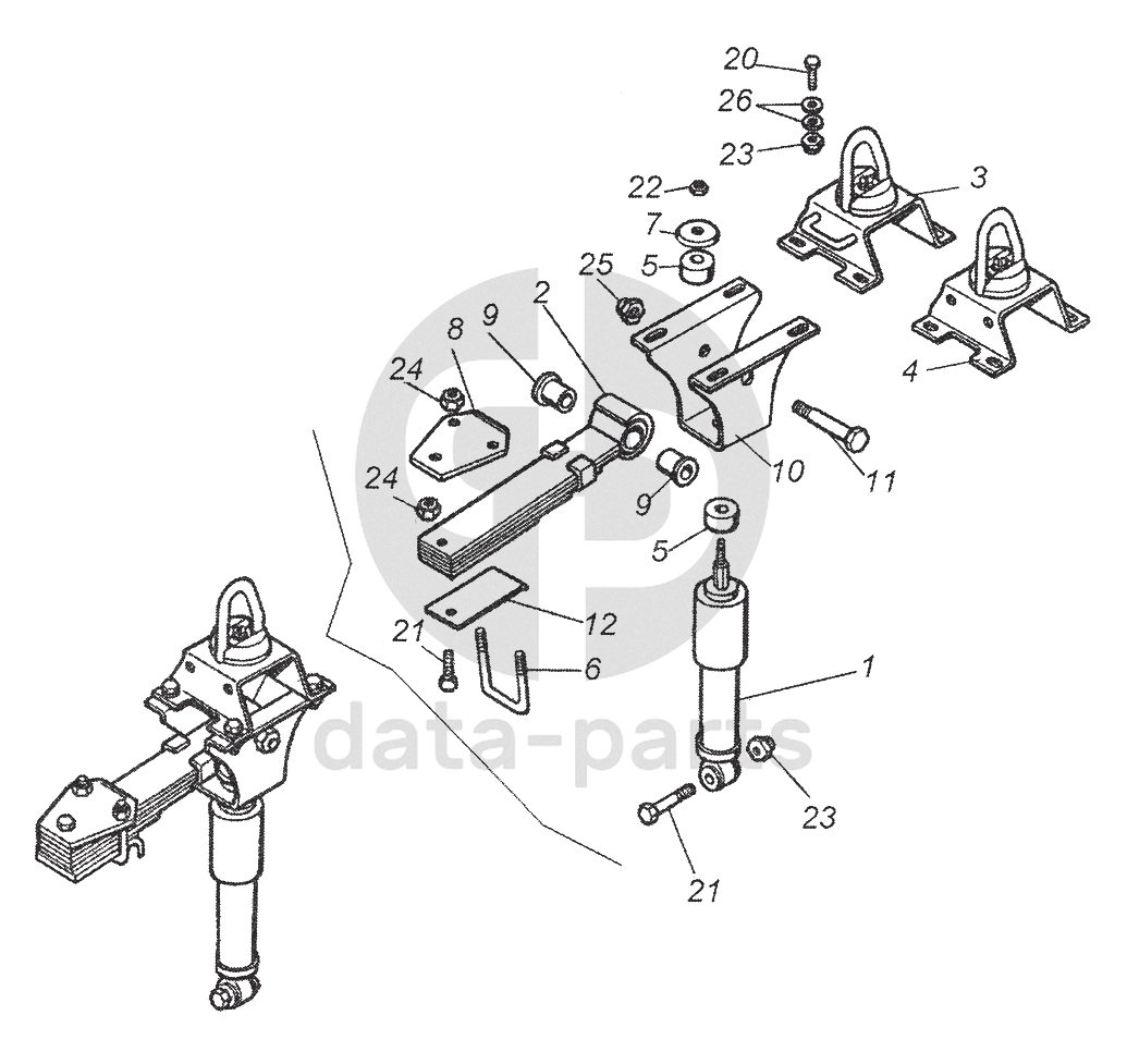43114-5001006 Установка задней подвески кабины КамАЗ-43261 (Евро-1, 2)
