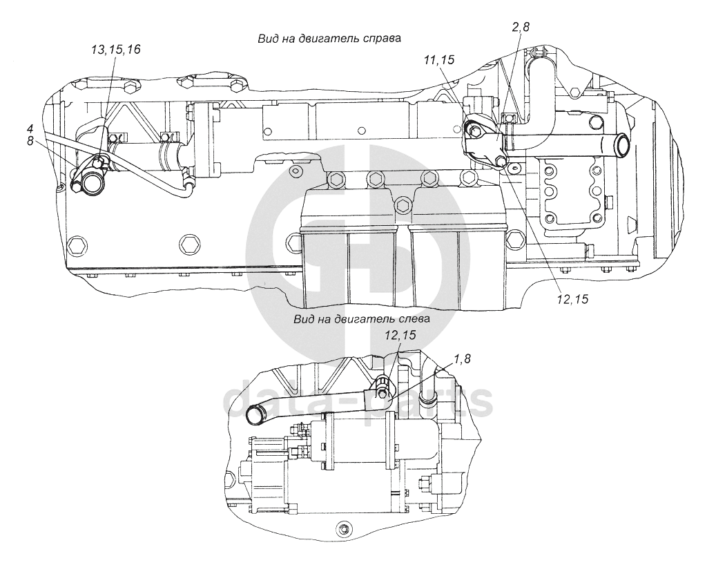 7406.1015002 Установка патрубка и штуцеров системы подогрева двигателя