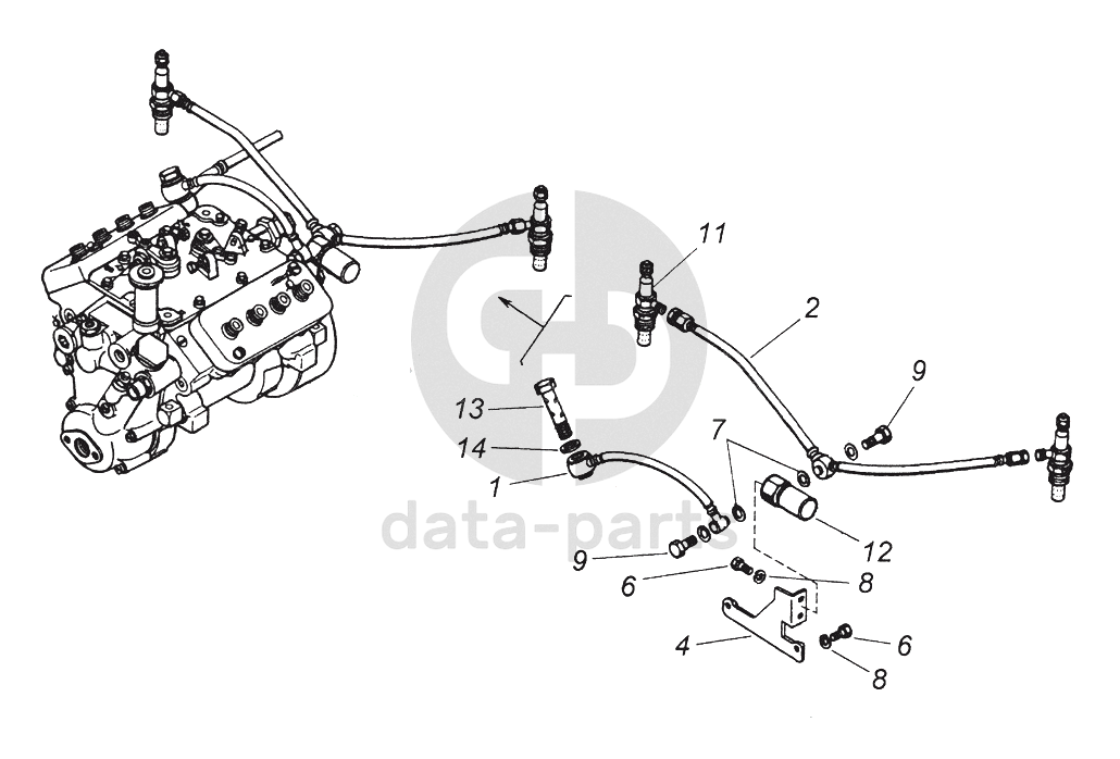 Трубка топливная от электромагнитного клапана к штифтовым свечам