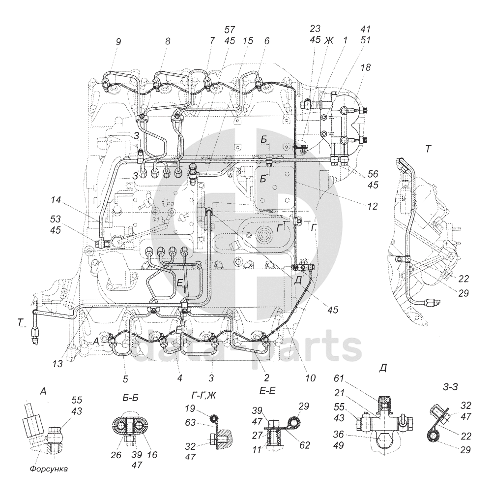 740.13-1104000-10 Установка топливопроводов КамАЗ-43261 (Евро-1, 2)