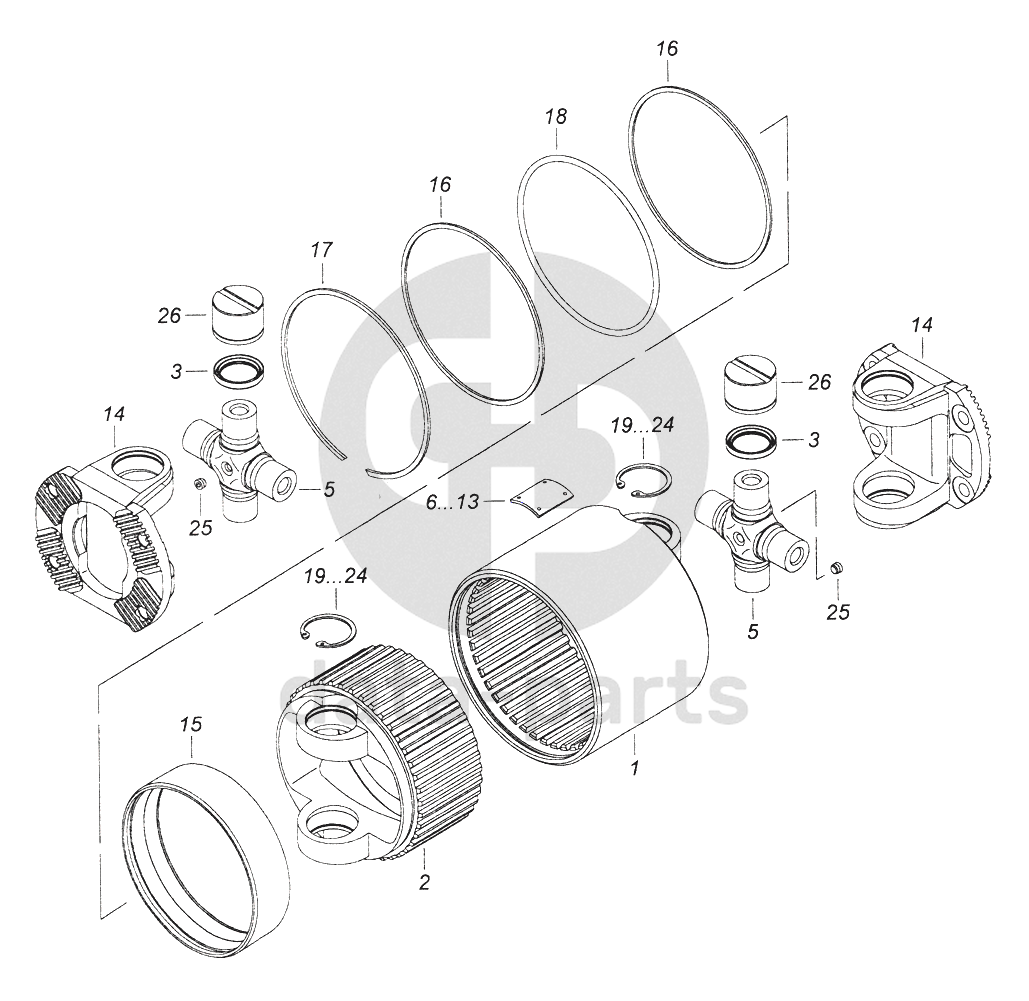 Вал карданный КАМАЗ промежуточный (4 отверстия торцевые шлицы) L=232мм