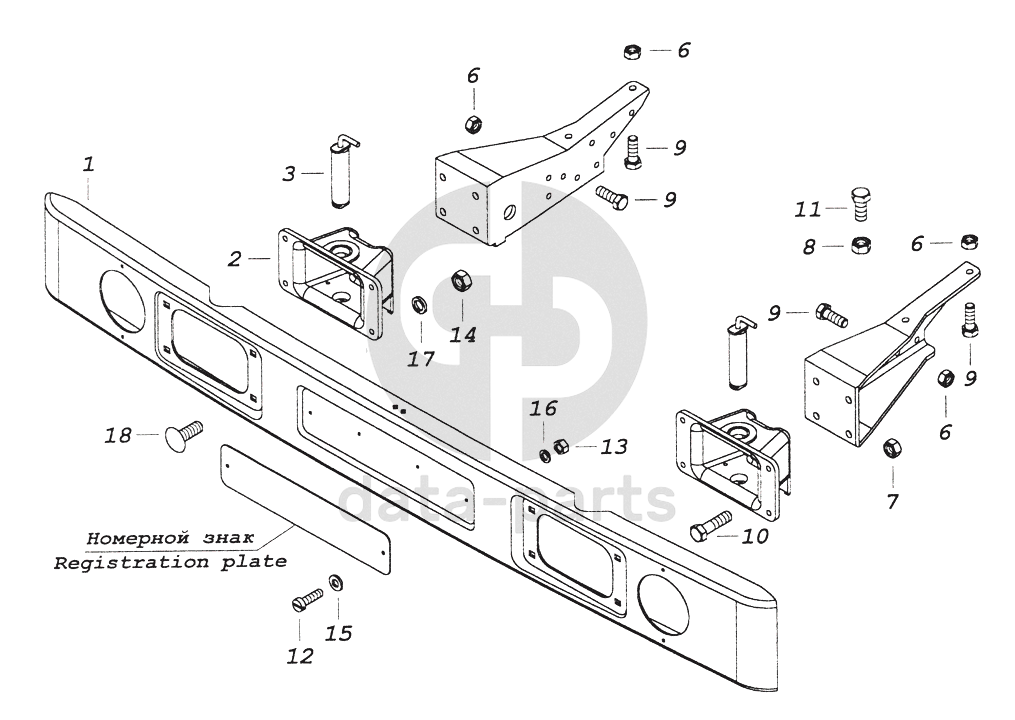 4310-2803003-20 Установка переднего буфера КамАЗ-43261 (Евро-1, 2)