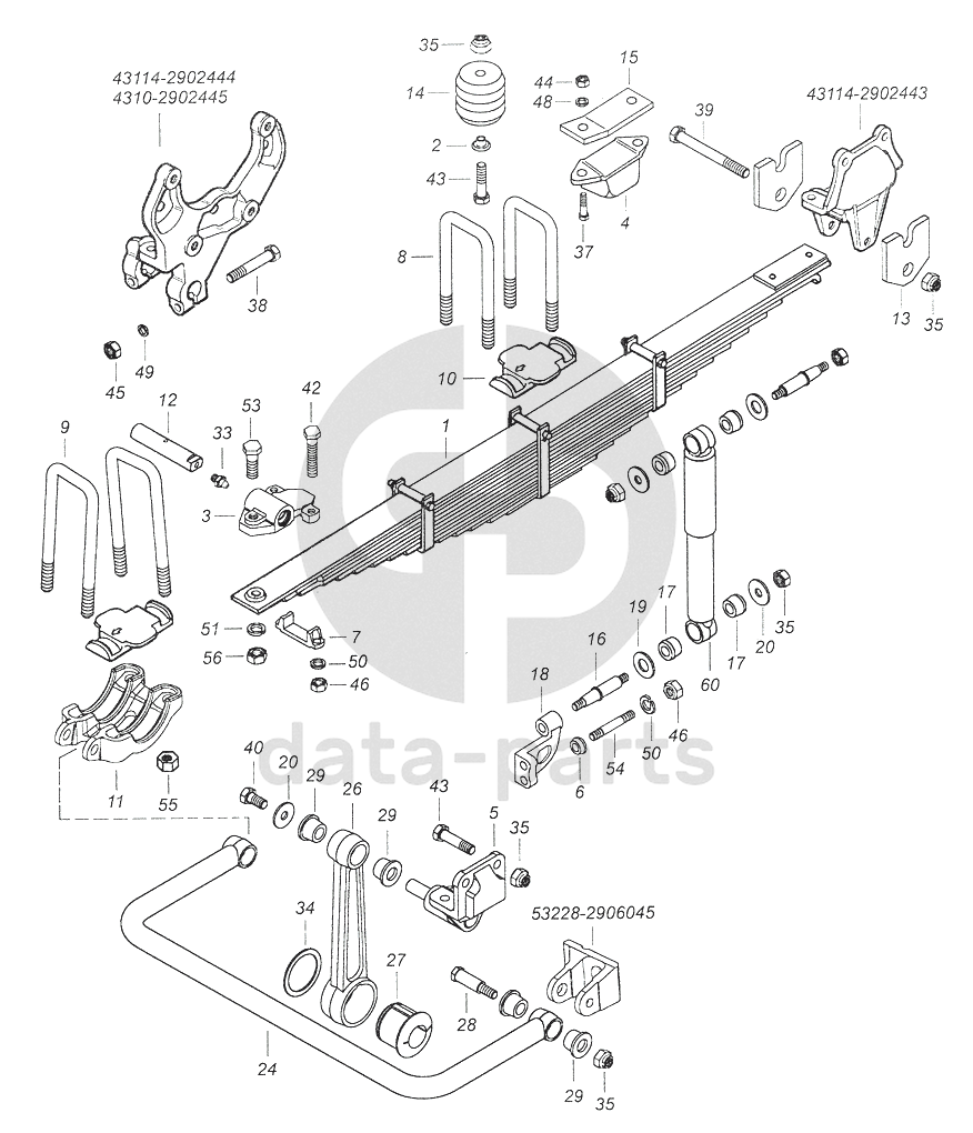 43501-2900001 Установка передней подвески КамАЗ-43261 (Евро-1, 2)
