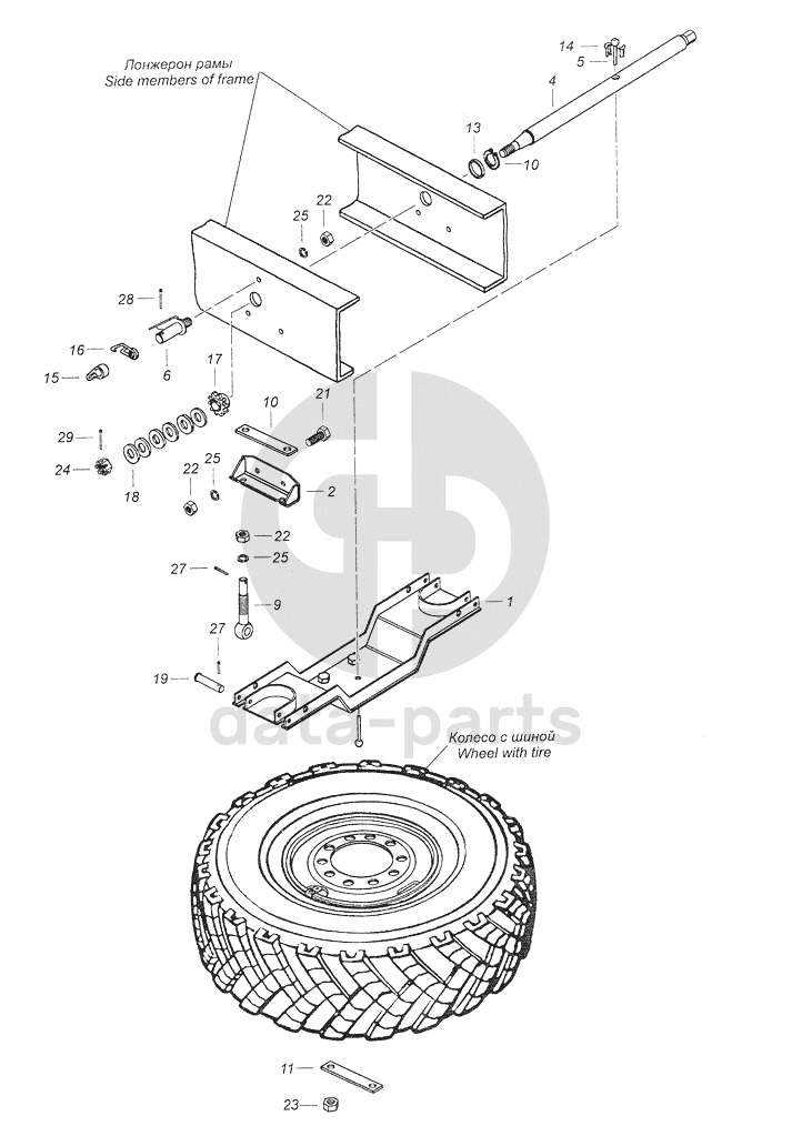 Ось КАМАЗ-43118 ворота держателя запасного колеса