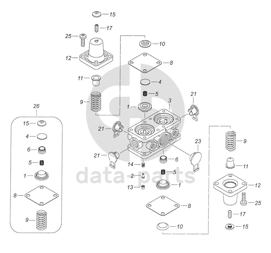 Клапан защитный четырехконтурный в сборе
