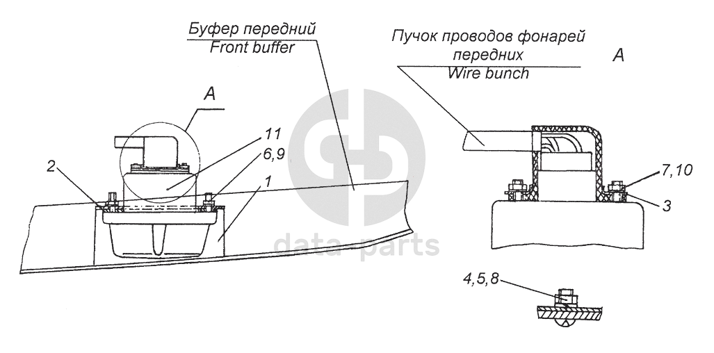 4310-3712001 Установка фонарей передних КамАЗ-43261 (Евро-1, 2)