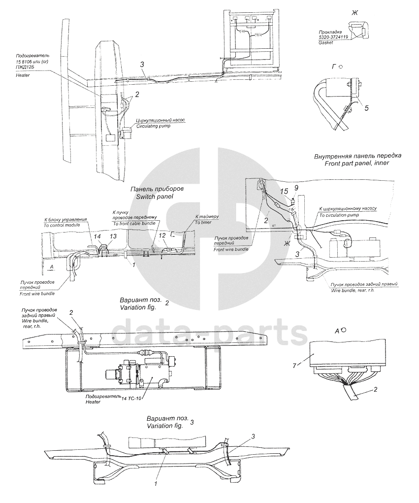 53205-3741001-20 Установка электрооборудования подогревателя ПЖД-12 КамАЗ-43261 (Евро-1, 2)