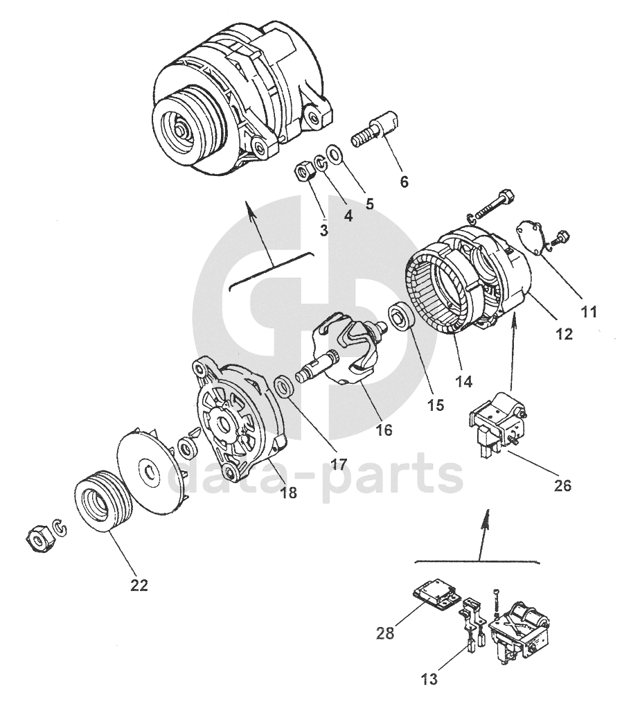 3122.3771 Генератор с проводом КамАЗ-43261 (Евро-1, 2)