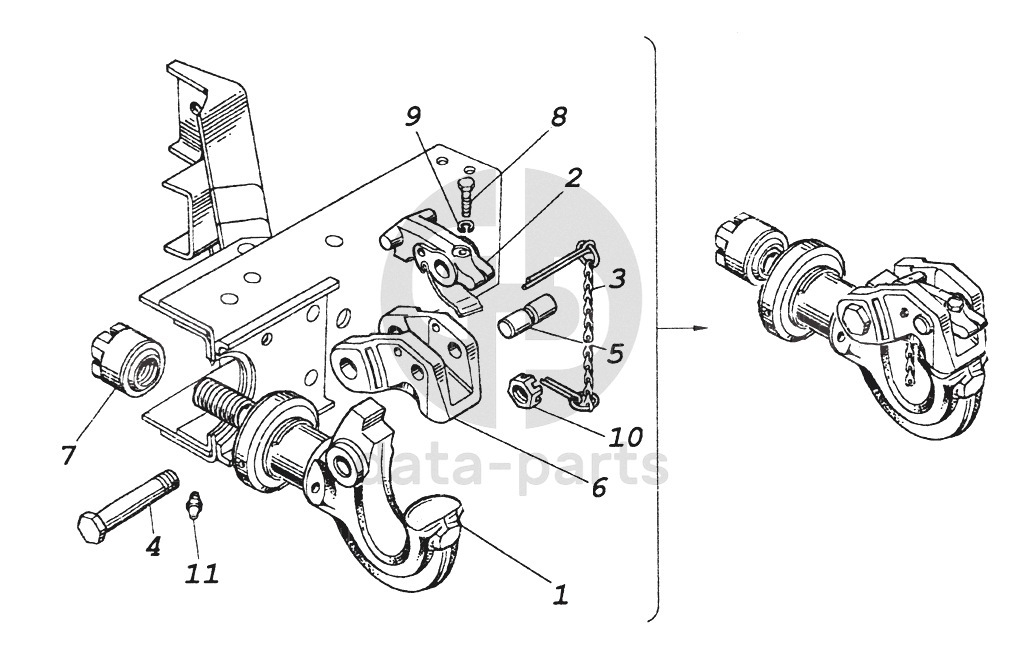 5320-2707212 Крюк буксирного прибора в сборе КамАЗ-43261 (Евро-1, 2)