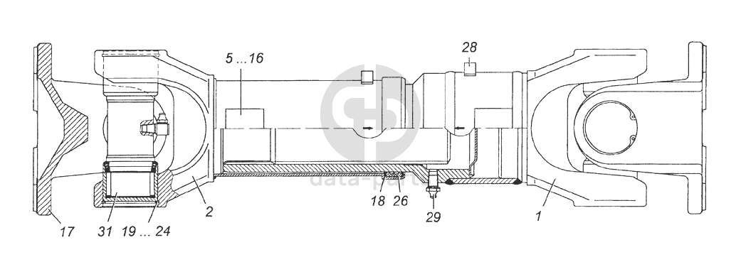 6350-2205011-10 Вал карданный среднего моста в сборе (сварка)