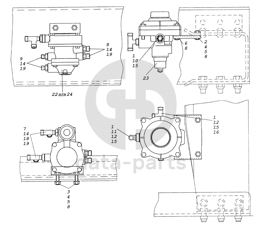 6350-3500022-30 Установка клапанов управления тормозами прицепа