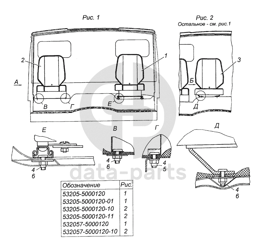 53205-5000120 Установка сидений КамАЗ-43501 (4х4)
