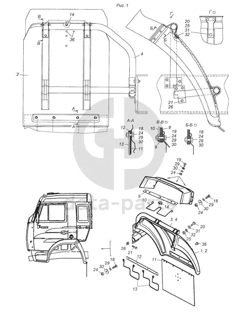 6350-8403009 Установка задней части переднего крыла КамАЗ-43501 (4х4)