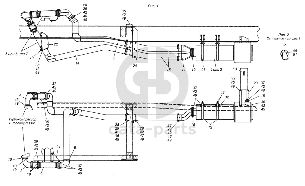 6350-1200001-10 Установка системы выпуска КамАЗ-43501 (4х4)