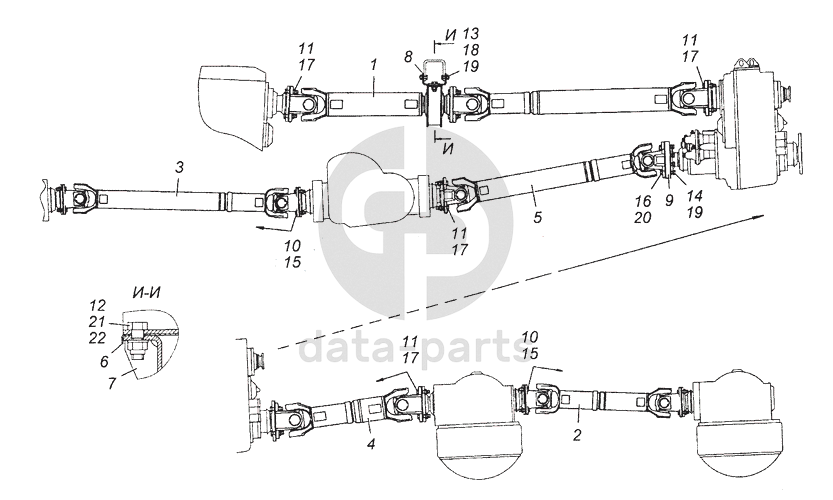 6350-2200001-10 Установка карданных валов КамАЗ-43501 (4х4)