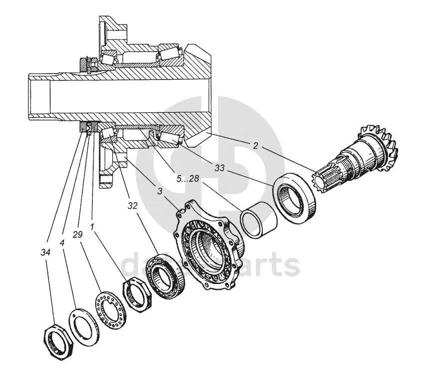 Гайка подшипника ведущей конической шестерни промежуточного моста в сборе