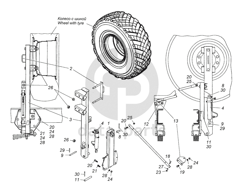 Ось КАМАЗ-43114 держателя колеса запасного