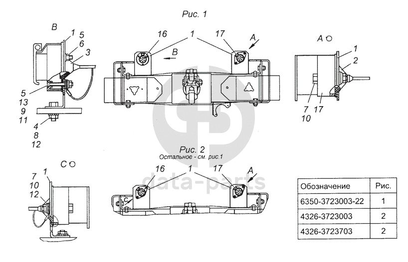 6350-3723003-22 Установка розеток прицепа КамАЗ-43501 (4х4)