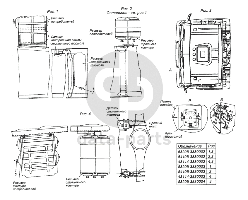 43114-3830002 Установка датчиков аварийного давления воздуха КамАЗ-43501 (4х4)