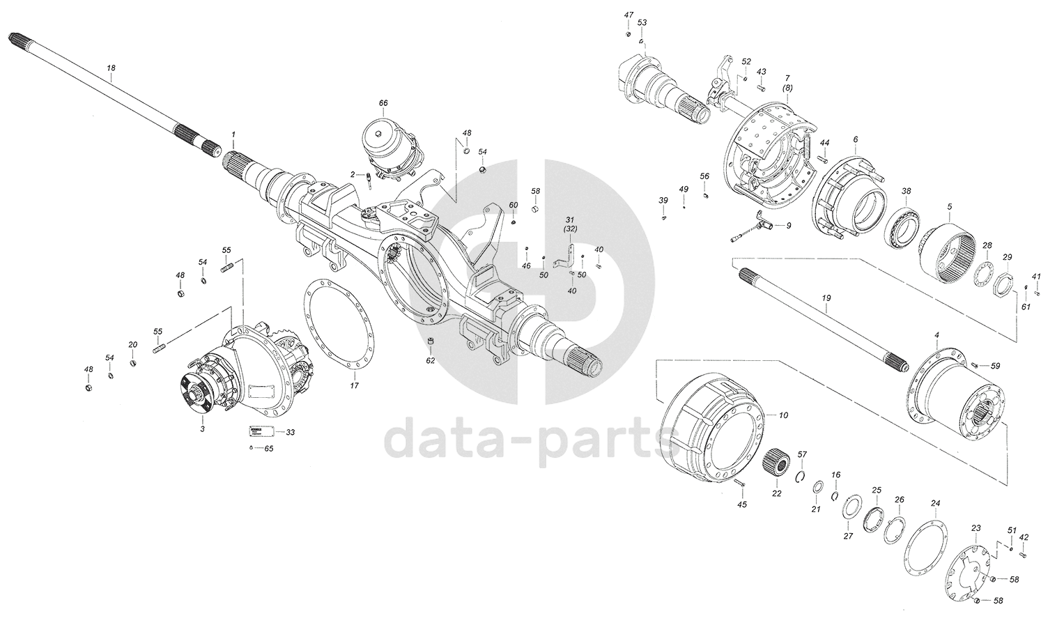 Картер заднего моста с механизмом межколесной блокировки в сборе