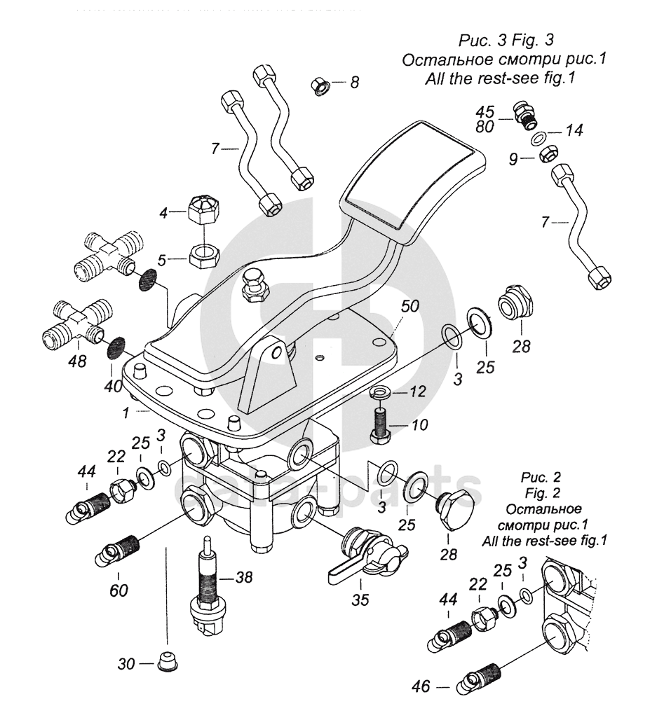 Кран КАМАЗ-ЕВРО тормозной 2-х секционный в сборе с педалью