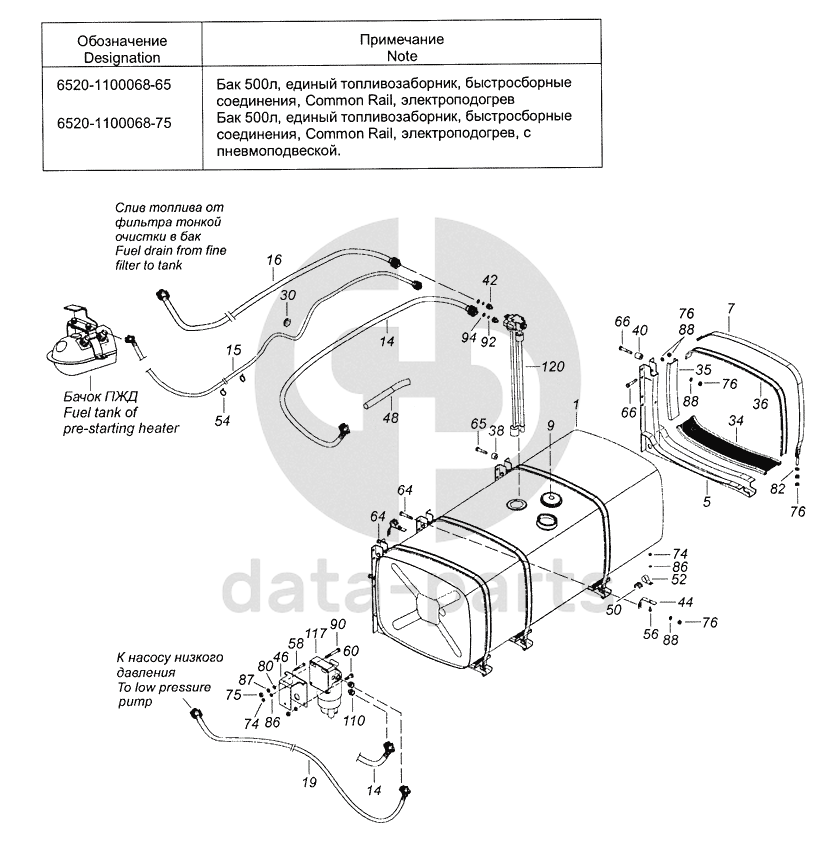 6520-1100068-65 Установка топливного бака, фильтра грубой очистки топлива и топливопроводов
