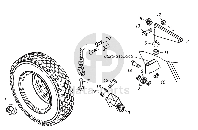 6520-3105010-21 Держатель запасного колеса КамАЗ-6522 (Евро-4)