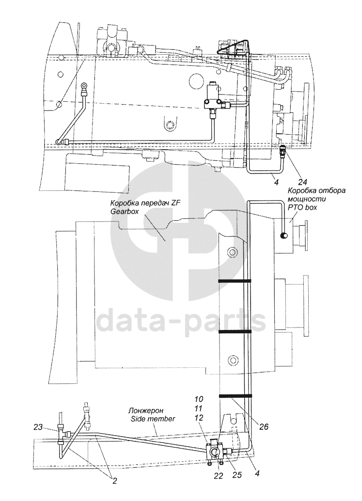 6520-4202006-60 Установка управления коробки отбора мощности КамАЗ-6522 (Евро-4)