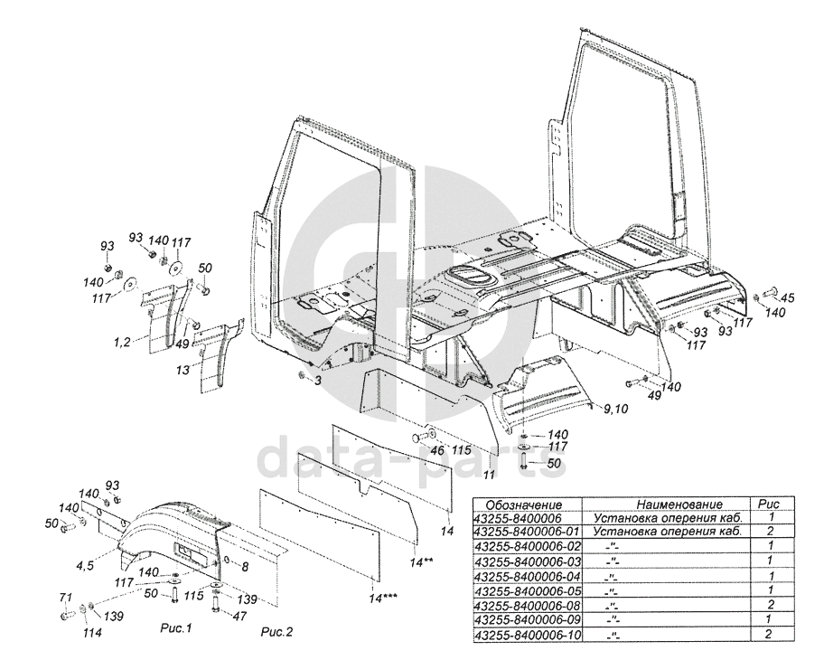 43255-8400006 Установка оперения кабины КамАЗ-6522 (Евро-4)