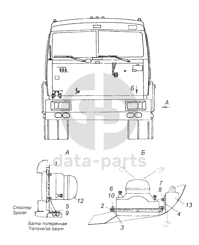65115-3711001-04 Установка фар и передних указателей поворота КамАЗ-65201 Евро 2-3