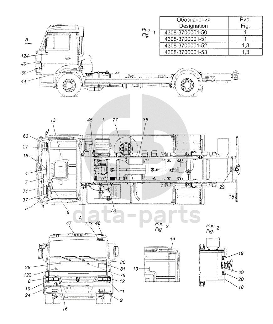 4308-3700001-50 Электрооборудование. Расположение на автомобиле КамАЗ-4308 (Евро 3)