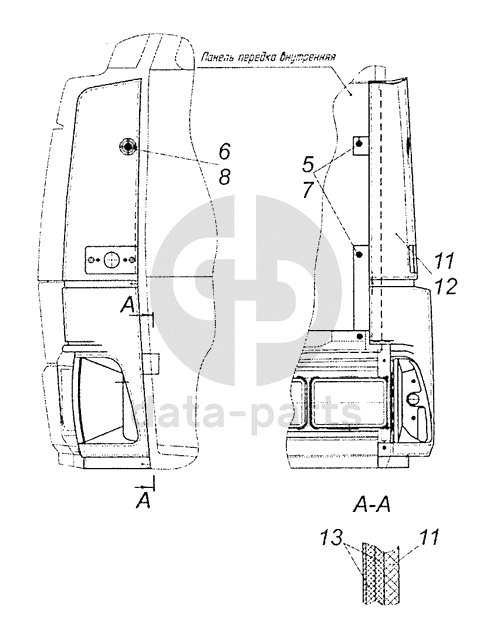 4308-5301003 Установка панели боковой съемной левая КамАЗ-4308 (Евро 3)