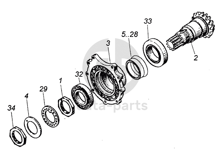 Гайка подшипника ведущей конической шестерни промежуточного моста в сборе