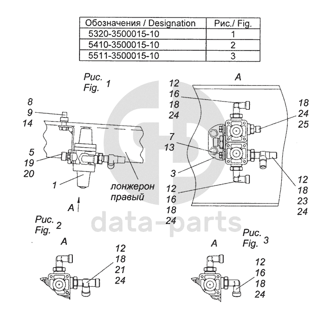 5320-3500015-10 Установка четырехконтурного защитного клапана КамАЗ-53229 (Евро 2)