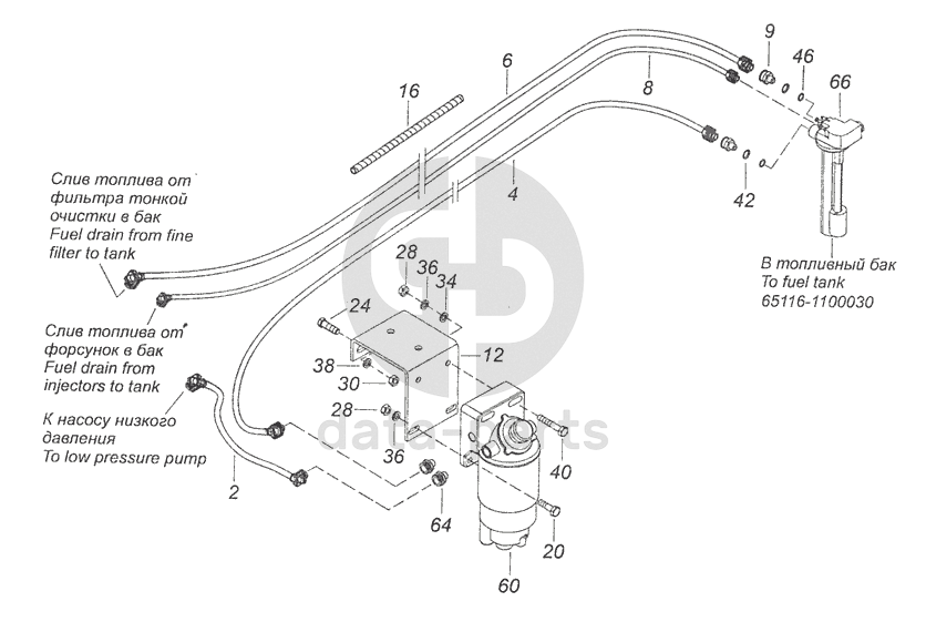 65117-1105030 Установка фильтра грубой очистки топлива и топливопроводов