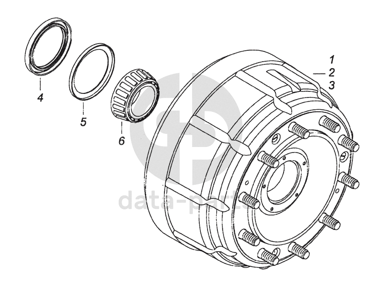 Ступица переднего колеса с барабаном, подшипником и манжетой