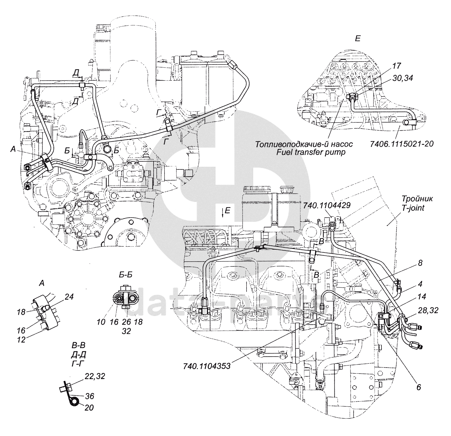 6520-1104000-90 Установка топливопроводов КамАЗ-6460 (Евро 3, 4)