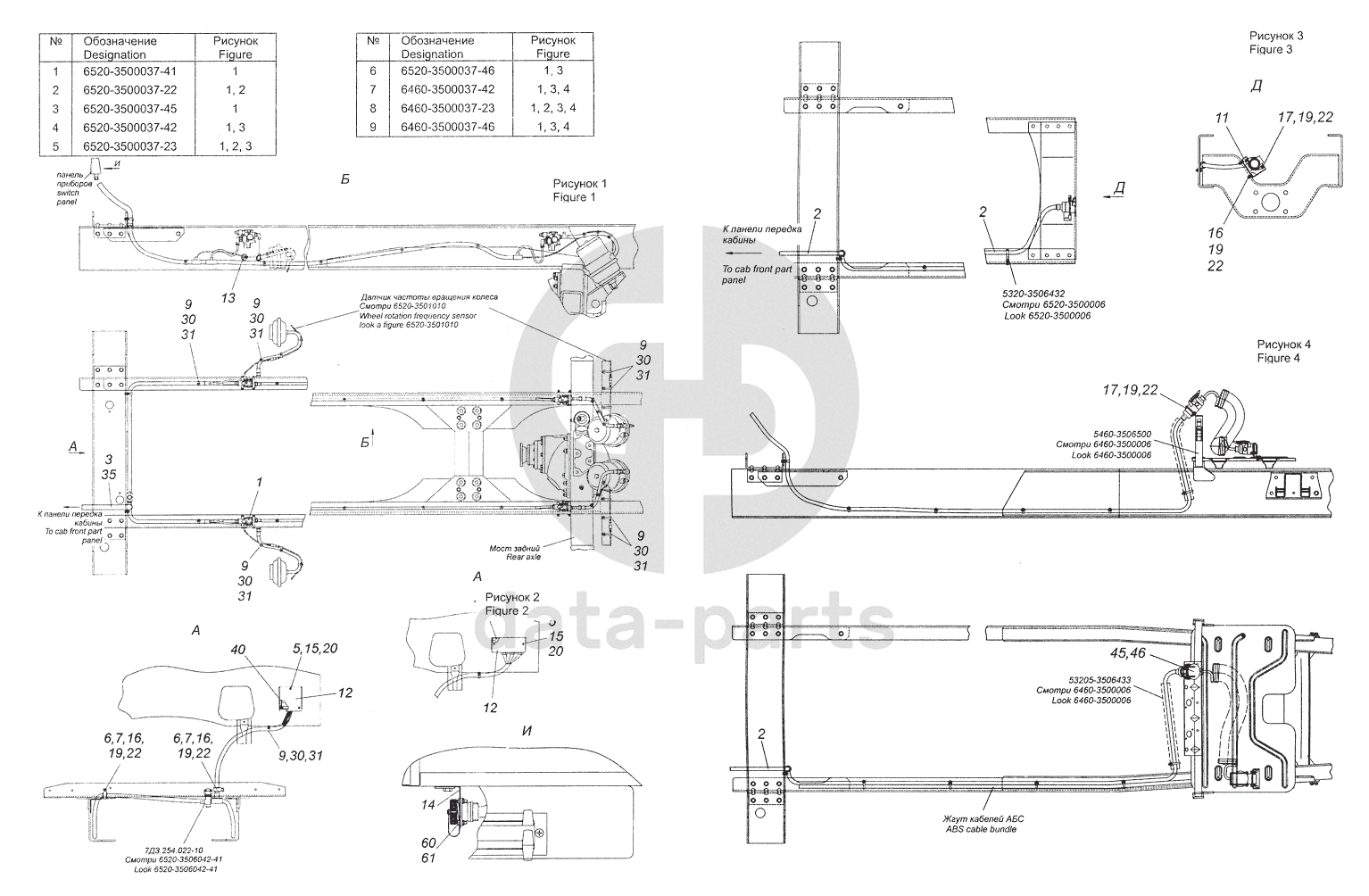 6520-3500037-41 Установка кабелей АБС КамАЗ-6460 (Евро 3, 4)