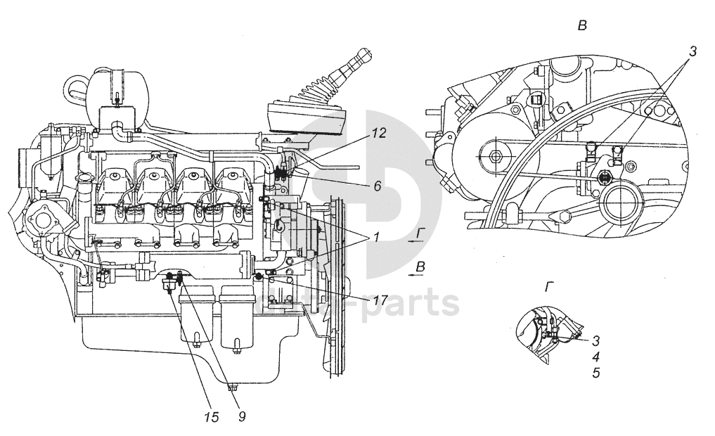 740.62-3800001 Установка датчиков КамАЗ-6460 (Евро 3, 4)