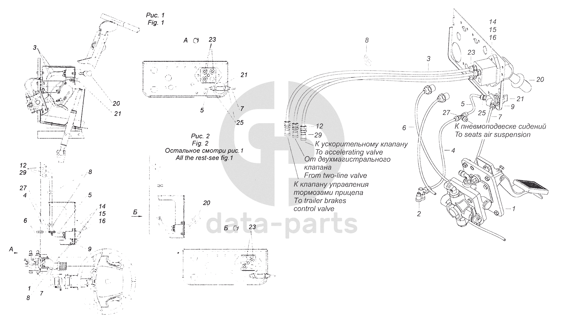 5460-3500080-05, 65201-3500080-10 Установка пневмопривода в кабине