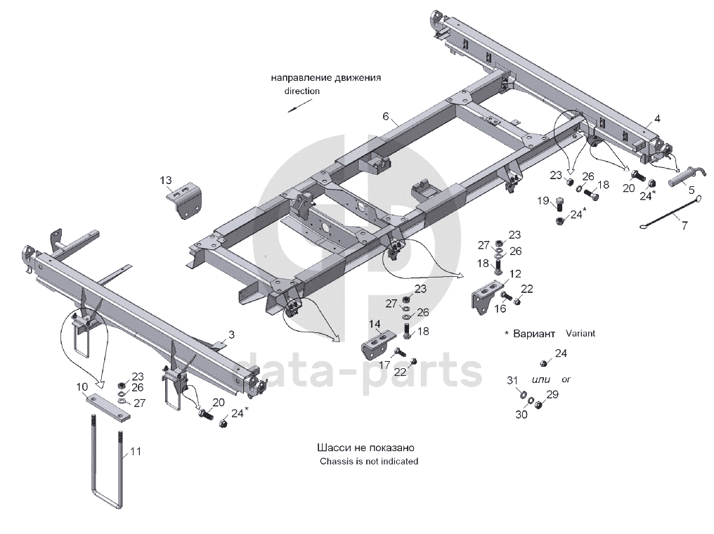 45143-8600064 Установка надрамника, опор платформы и поперечин