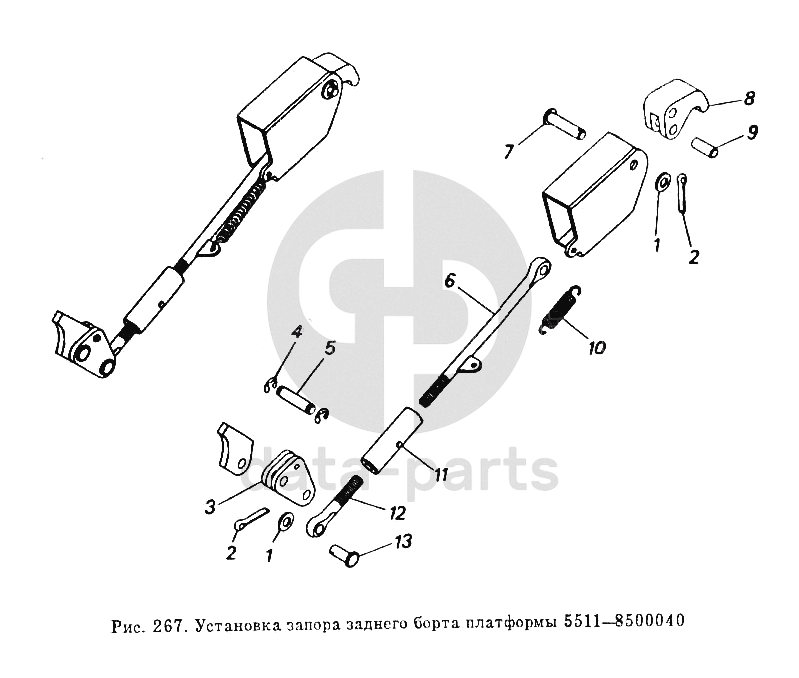 Установка запора заднего борта платформы 5511-8500040 КамАЗ-53212