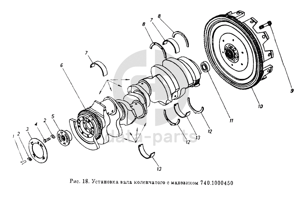Установка вала коленчатого с маховиком КамАЗ-53212