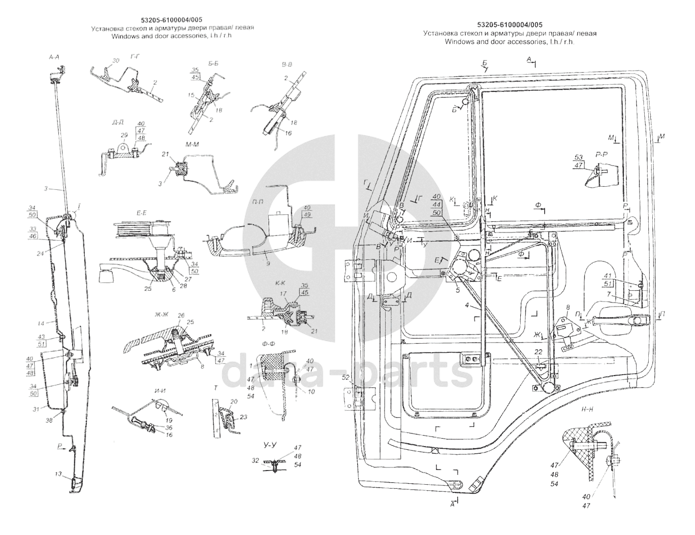 Установка стекол и арматуры двери правая/ левая КамАЗ-53228, 65111