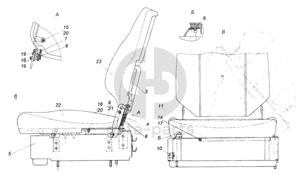 Кронштейн спинки пассажирского сиденья правый в сборе